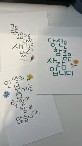 En Corea, la caligrafía no se limita a los museos o a los libros antiguos. Forma parte del paisaje cotidiano: en los carteles de cafeterías, en portadas de libros, en envases de cosmética y en la cartelería cultural. Esta presencia responde a una estética muy particular: la escritura manuscrita transmite calidez humana y convierte las palabras en pequeñas piezas visuales.